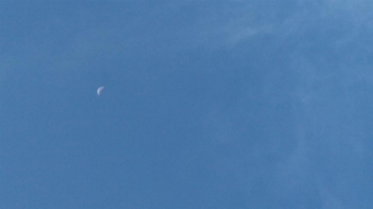 とても気持ちのよい朝。ふと空を見上げると青空に白いお月様が見えました。とてもピュアな気持ちになれる瞬間です。なんて綺麗なのでしょう。自然と「ありがとう」という感謝が湧きあがってきます。